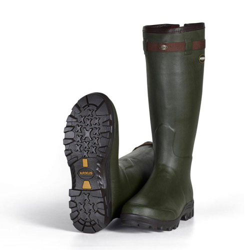 Arxus Primo Nord Zip er en støvle udviklet til maksimal komfort, pasform og funktion. Det rene naturgummi giver lang levetid og høj modstandsdygtighed mod krævende terræn. Støvlen er foret med 4 mm bordeauxrød neopren, som giver fremragende varmeisolering og beskyttelse ned til -20 °C. En robust Riri-lynlås bag på skaftet gør det nemt at tage støvlerne af og på samt giver mulighed for ventilation. Lynlåsen er placeret på bagsiden for at sikre jævn belastning og længere holdbarhed. Bag hælen er der indlagt syntetlæder, som beskytter foret mod slid. Sålen består af seks lag og har Arxus’ karakteristiske X-mønster, der giver optimal komfort, støtte og sikkert greb i ujævnt terræn. Velegnet til alt fra hundeførere til jægere, der kræver maksimal komfort og pålidelighed i al slags vejr.
